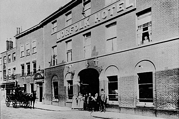 Woodforde is known to have stabled his horse at the Woolpack (he calls it the Wool-pocket) in St Giles [1]. The Norfolk Pubs site gives the address as 25 St Giles Street from 1814, after which it became known as the Norfolk Hotel [2]. The photograph above shows its appearance in the late nineteenth century but the building was demolished in 1904 to make way for the Grand Opera House, which then became a theatre and cinema – The Hippodrome.