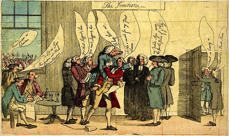 To stifle Beevor’s independence, the sitting MP – Harbord Harbord, 1st Lord Suffield of Gunton Hall – was asked to join forces, or make a ‘junction’ with, another candidate, Edmund Bacon. Five hundred Norwich freemen cried out against this chicanery [3].