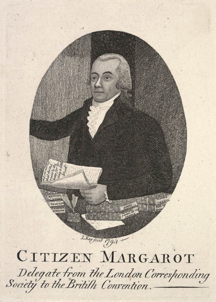 In 1793, at a convention held by the Scottish Societies of Friends of the People, it was decided to correspond with all like-minded societies in the kingdom. The Norwich Revolution Society asked London delegate, Maurice Margarot, to represent them. A few months later, when the society had become the British Convention of Friends of the People, its leaders were arrested. Margarot was charged with sedition and transported to Australia for 14 years. While he waited at Spithead for transportation The Norwich Revolution Society sent him £20 [2].