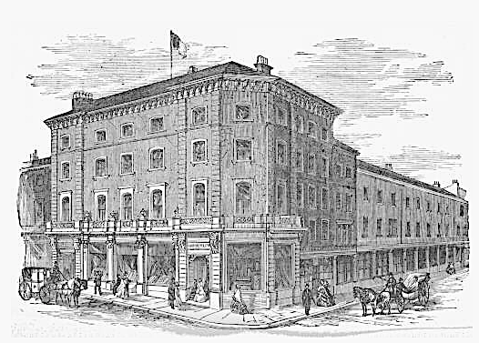 Goad insurance map from 1894 when Curl Bros occupied much, but not all, of the block. The yellow line indicates Green’s the Outfitters before their move to premises between Haymarket and Orford Place. Courtesy of Thomas Barnes, Aviva. ©The British Library Board