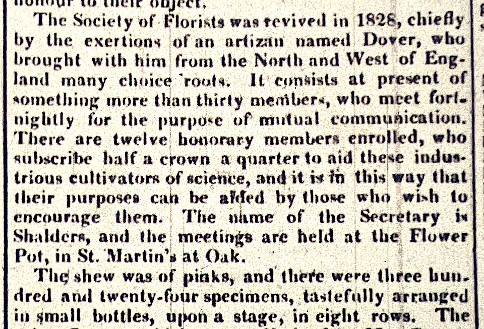 Norwich Mercury July 1th 1829; a show of pinks at the Flower Pot public house