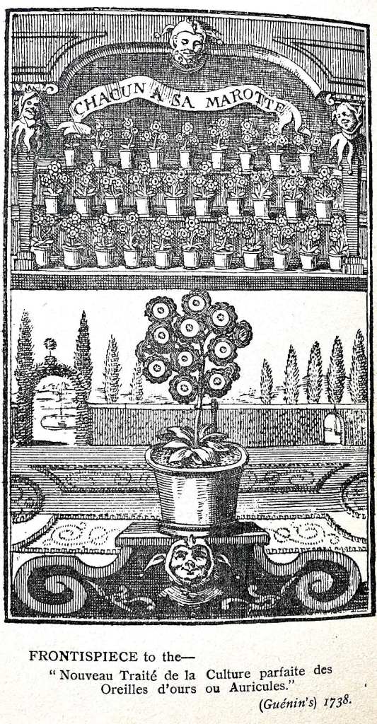 An auricula theatre, reproduced from Guénin’s 1738 work on Bear’s Ears or auriculas, from Payne’s book of 1908 [15]. Courtesy of John Innes Special Collection.