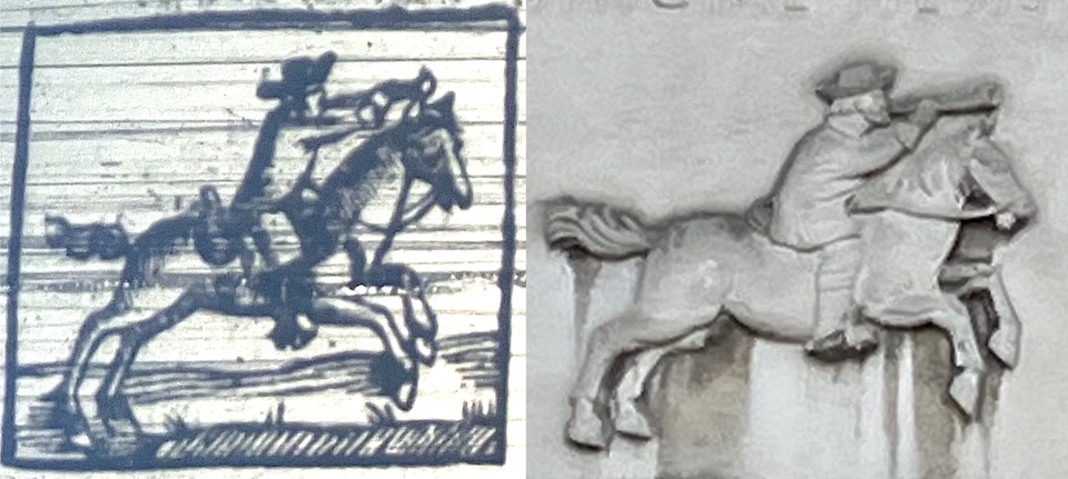 Left, from the banner of The Norwich Post; right, commemorating the original site of the Norwichpressin Redwell Street.