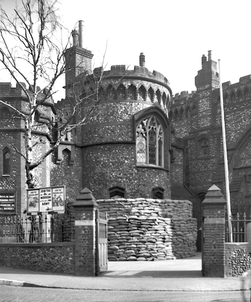 The Drill Hall in 1938, with sandbags as an air raid precaution. © georgeplunkett.co.uk
