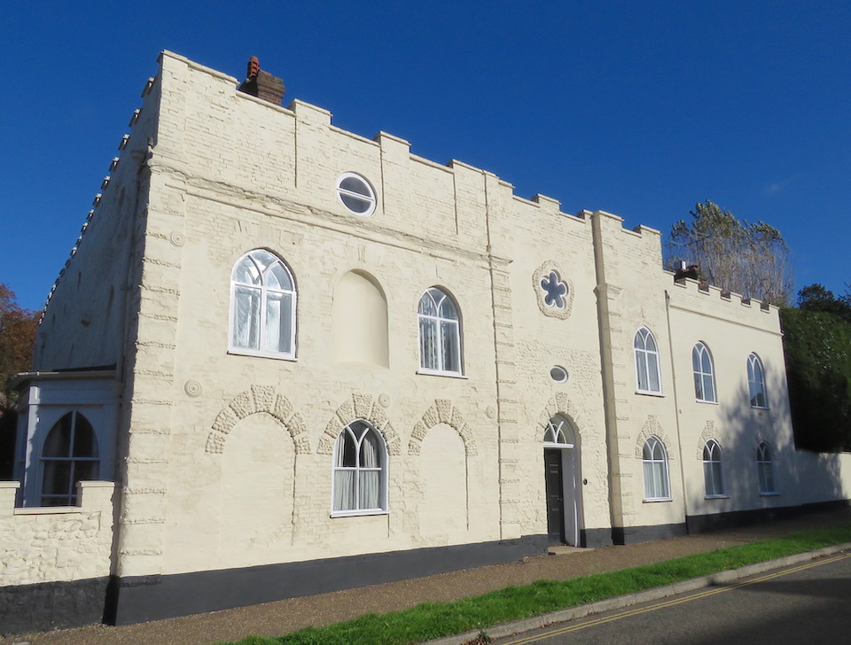 Jobson also promoted Gothic chapels on the grounds of economy. Unhindered by the high-minded principles of the Camden Group, Dissenting Gothic [22] buildings could be constructed largely in brick (and we know of the difficulties of finding good building stone in Norfolk). Local architect AF Scott, himself a Wesleyan Methodist, designed numerous NeoGothic chapels around the county, usually in red brick with Gothick details showcased on the short gable end (see post on AF Scott [23]).
