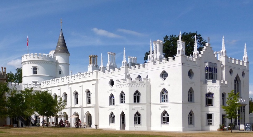 We last encountered Walpole’s youngest son, Horace, as an honorary out-of-town member of the Norwich United Friars – a charitable fraternity that held mock ceremonies wearing monkish robes and pink woollen ‘tonsures’ on their heads [6]. Horace did not share his father’s liking for the geometrical rigour of the Classical Revival; instead he built his country seat – Strawberry Hill House, Twickenham (1749-1776) – in the Gothic style, a forerunner of the Gothic Revival that would dominate the Victorian age.