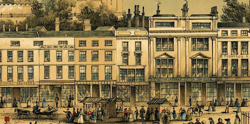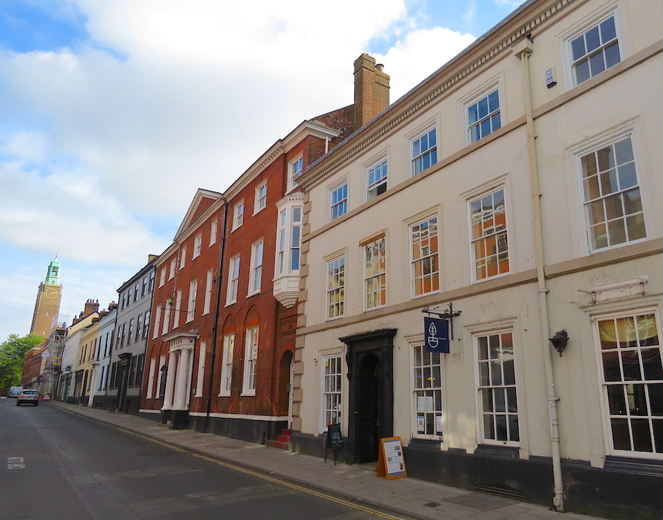 The stuccoed, four-storeyed building to the right of Costa Coffee as it turns around to face Gentleman’s Walk was designed by Edward Boardman in 1872, just before he began planning the improvements to London Street.