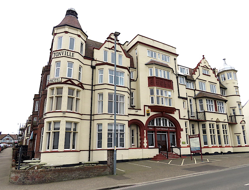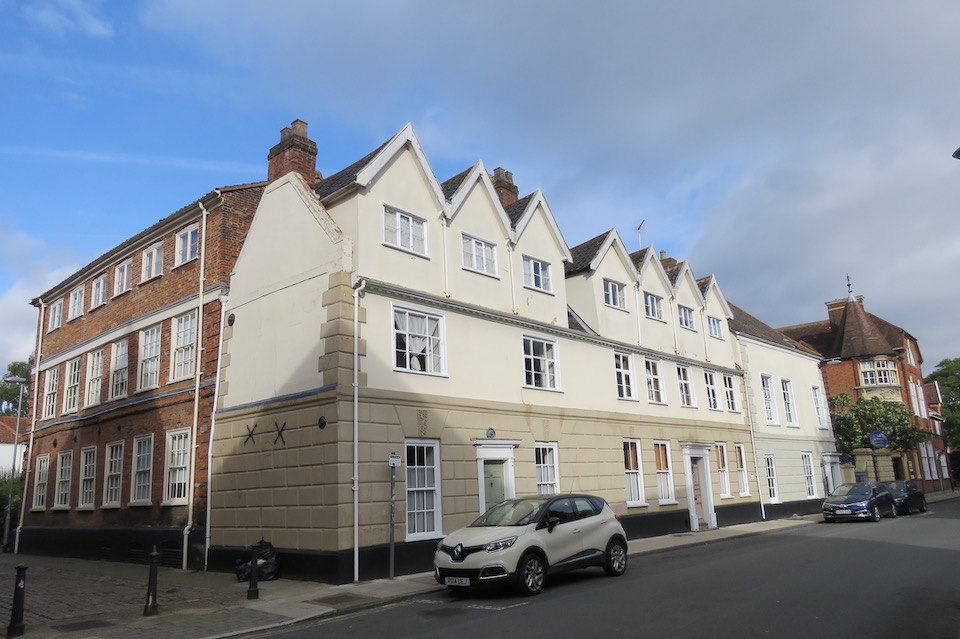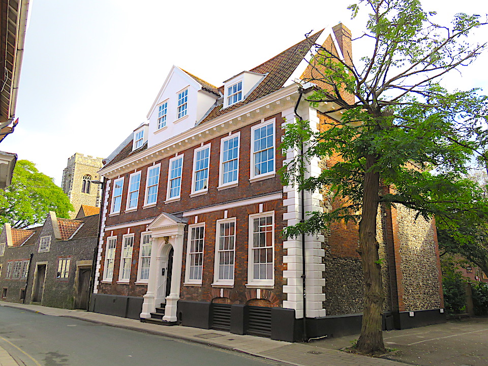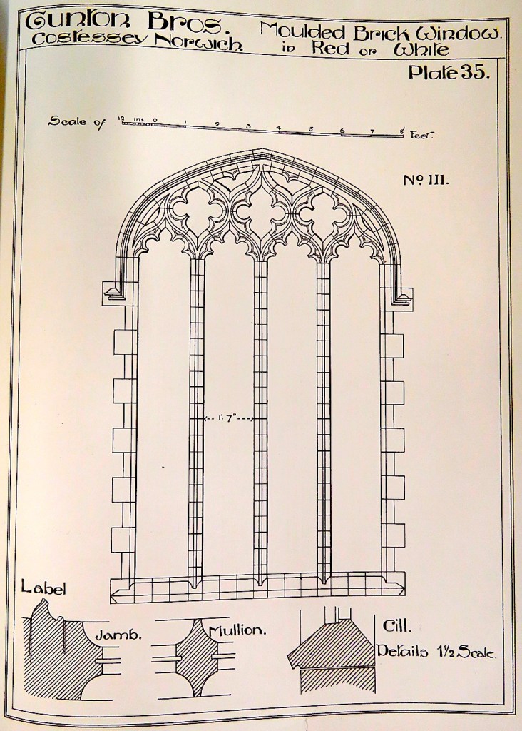 In Rosemary Salt’s words [2] ‘The building exists in mutilated form’ after the attic storey was removed and the facade – composed of carved red bricks from the local Costessey Brickworks [5] – was obscured by cream paint.