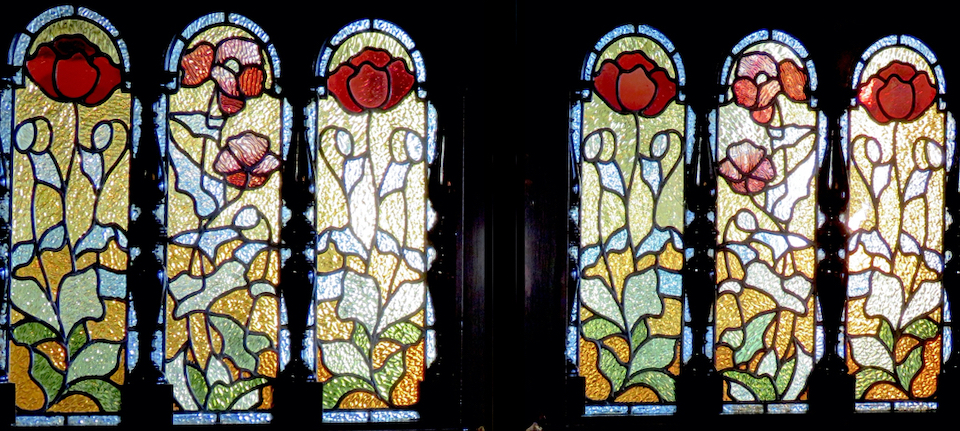 Developed in 1888 by the Head of Doulton’s Architectural Department, WJ Neatby, Carrara Ware was designed to imitate marble. Its weatherproof properties were exploited by George Skipper for the exterior surfaces of Norwich’s Royal Arcade, built where the Royal Hotel had stood [9]. Doulton’s records at their factory in Lambeth were largely destroyed in the Second World War, making it difficult to attribute their work to a particular building, but here we have a direct link. This photograph taken prior to the 1960 renovation shows a deep dark skirting beneath the windows that may well be the Carrara Ware specified by Edward Boardman.