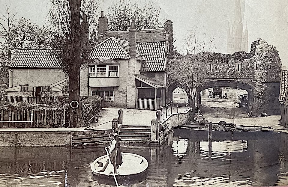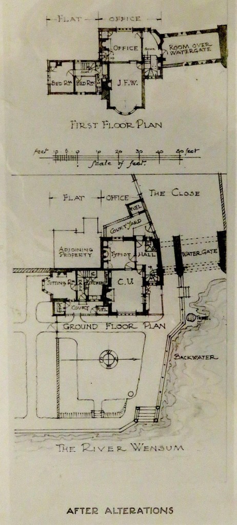 In 1894 he added another eight bays separated from the 1876 building by a tower. At the foot of the tower a two-storey-high opening preserved the public right of way down to the River Wensum via Water Lane.